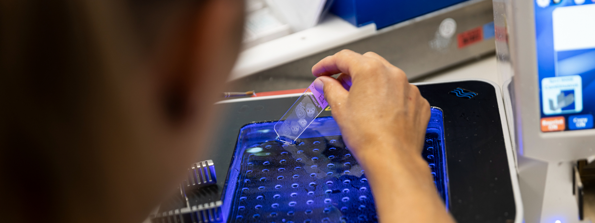 Meist werden von Krankenhäusern oder niedergelassenen Ärzten/Praxen Gewebeproben oder Flüssigkeiten entnommen. Das „Haltbar“ machen der Proben wird durch die Lagerung in einer speziellen Fixierungsflüssigkeit (z. B. Formalin) gewährleistet. In dieser Fixierungsflüssigkeit gelangen die Proben in die Pathologie. Dort wird das Gewebe makroskopisch, also mit dem bloßen Auge, begutachtet und beschrieben. Kleinere Proben, wie Biopsien werden direkt in eine Kassette (kleine „Box“ aus Plastik) eingebettet. Größere Präparate (z. B. Darm- oder Brustpräparate) werden von Ärzt:innen begutachtet, die relevanten bzw. representativen Bereiche zugeschnitten und ebenfalls in eine oder mehrere Kassetten gegeben. Alle Proben in den Kassetten werden automatisiert entwässert, bevor sie in der Kassette nun mit Hilfe von Paraffin in einen Block gegossen werden. Aus diesem Paraffinblock werden anschließend hauchdünne Schnitte von 1-2μm, die in etwa einer einzelnen Schicht von Zellen entsprechen, hergestellt. Diese Schnitte werden auf ein kleines Glas (Objektträger) aufzogen und mit verschiedenen Farblösungen angefärbt. Durch die verschiedenen Farblösungen werden unterschiedliche Bereiche im Gewebe und die einzelnen Zellen angefärbt. Diese Schnitte werden von den Patholog:innen unter dem Mikroskop begutachtet und eine Diagnose erstellt. In diesem Befundbericht werden beispielsweise Informationen über die Art des Tumors (gutartig oder bösartig), über die Schnittränder (Entfernung im Gesunden oder nicht) oder Metastasierungen beschrieben. Anhand eines solchen Befundberichtes können die behandelnden klinischen Ärzt:innen dann präzise die Erkrankung einschätzen und möglicherweise (weiter)therapieren.